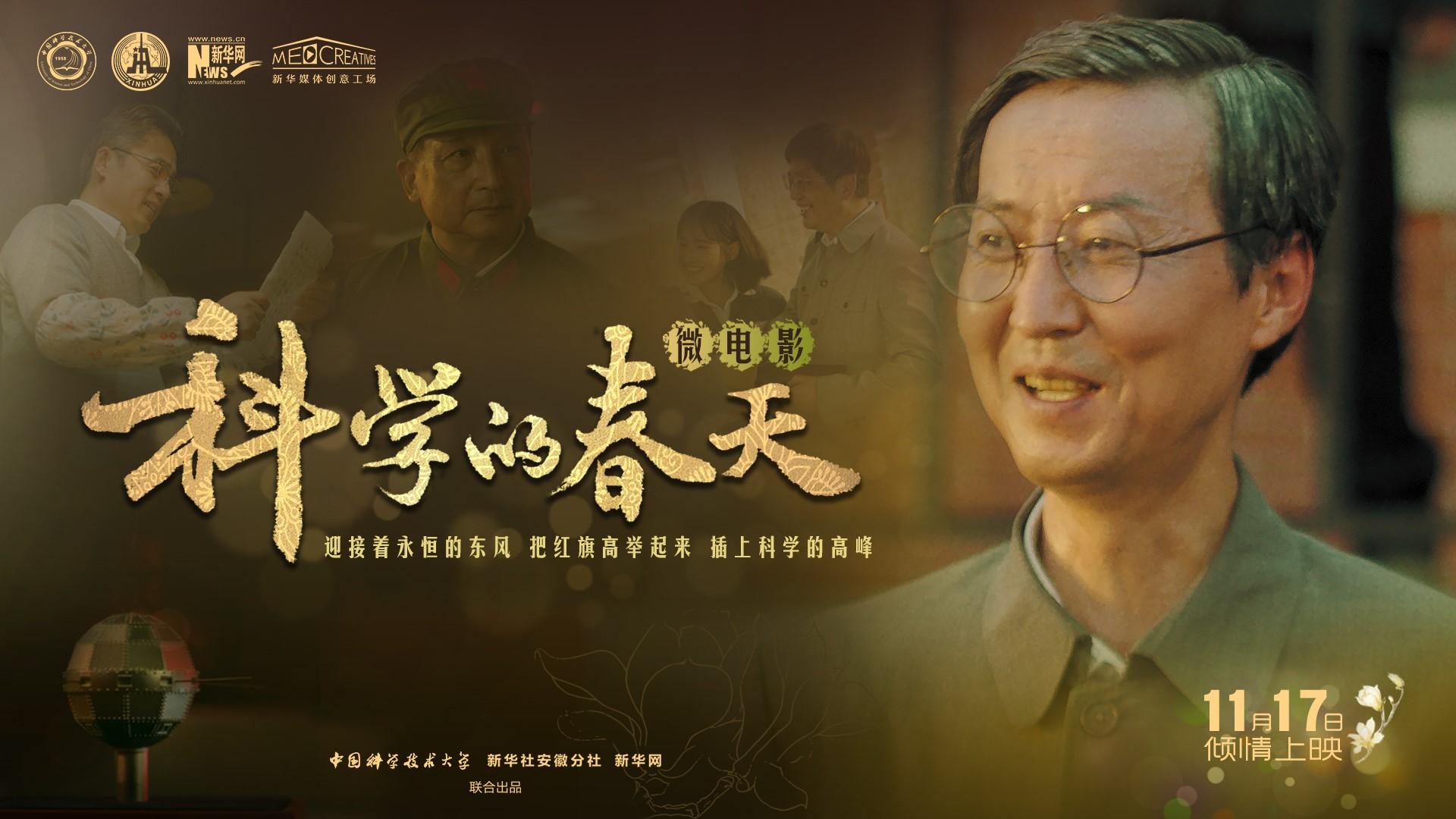 首映式将于 2022年11月17日下午16:00在东区活动中心五楼报告厅举行,欢迎感兴趣的师生到场观看。首映式结束后,学校新闻网、官方微信和新华网将及时在线发布《科学的春天》微电影线上高清版本,欢迎师生届时关注收看。