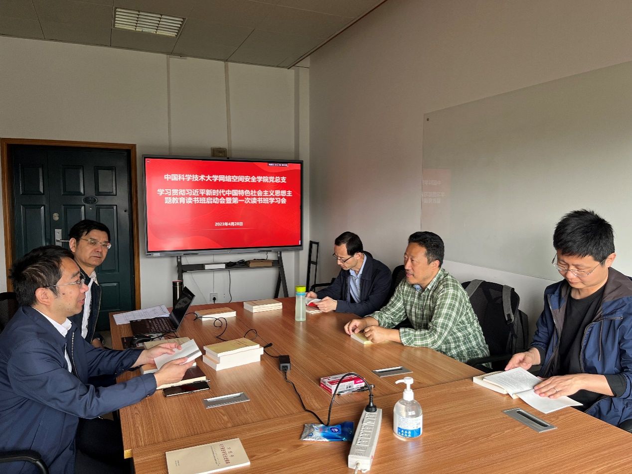 4月28日,网络空间安全学院党总支学习贯彻习近平新时代中国特色社会主义思想主题教育读书班开班式暨主题教育第二次专题学习会在西区电四楼402会议室举行。院党总支书记、主题教育领导小组组长谭勇主持开班式和学习会。院党政领导班子成员参加会议。