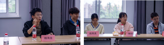 会上,2021级本科生结合自身经历,分享个人在政治课堂、党团班级等活动中参与主题教育的心得体会,并从“学业规划、飞跃重洋、双创竞赛、班级工作、个人生活”等方面展开交流,提出意见与建议。张文真、花正双与同学们现场交流互动,对同学们提出的意见建议进行回应。