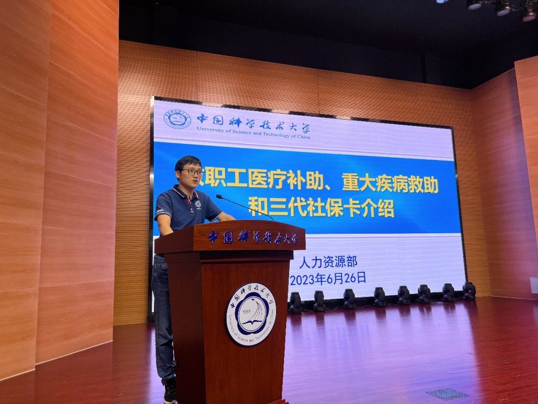 人力资源部人事服务与社会保障办公室主任朱波详细介绍了广大教职工普遍关心的教职工医保概况、医保个人账户变化、医保术语、学校医疗补助、重大疾病救助和三代社保卡办理等方面的政策。