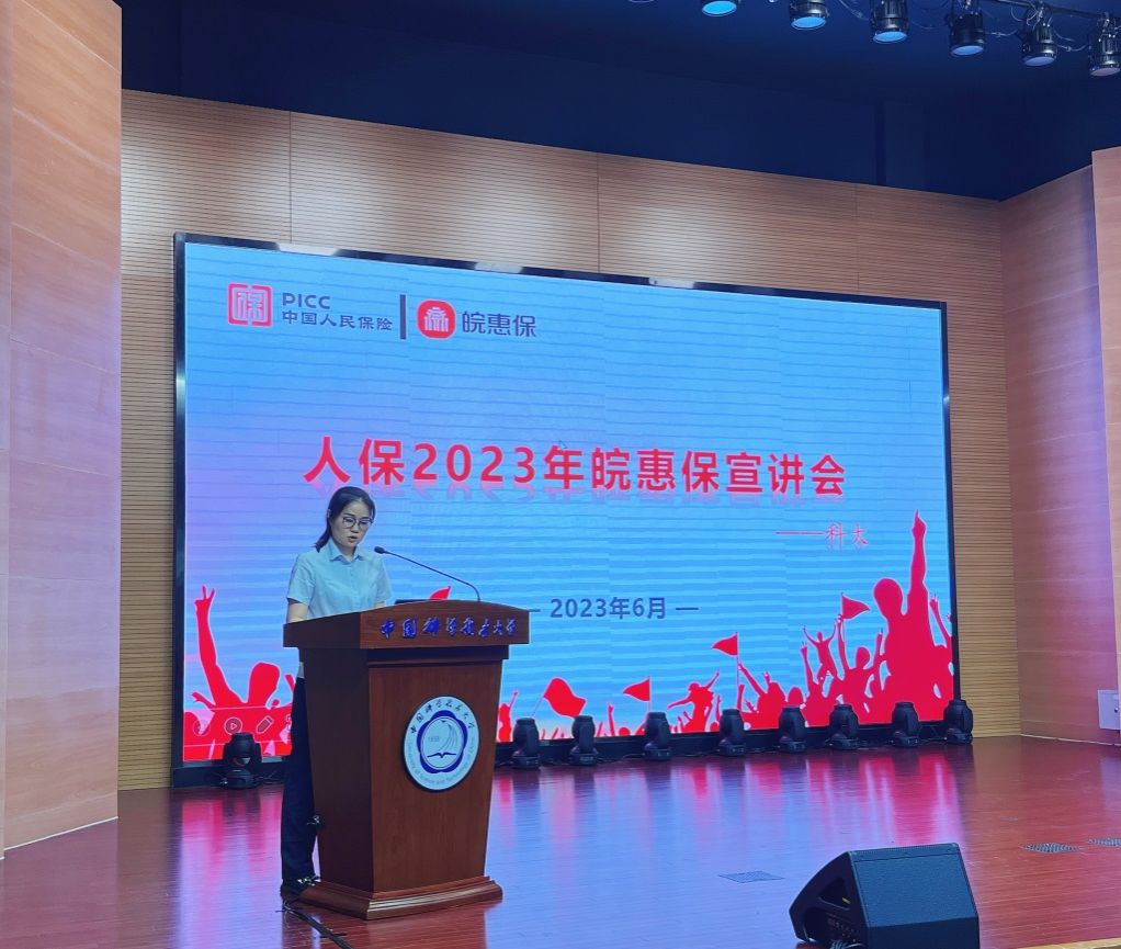 为建立多层次医疗保障体系,学校已连续两年为全校教职工(含离退休人员)统一购买了商业补充医疗保险“皖惠保”和高额意外险。为便于广大教职工了解“皖惠保”和意外险有关政策,中国人保财险公司业务经理余梦云就“皖惠保”产品和意外险的具体内容、理赔办法等做了宣讲。