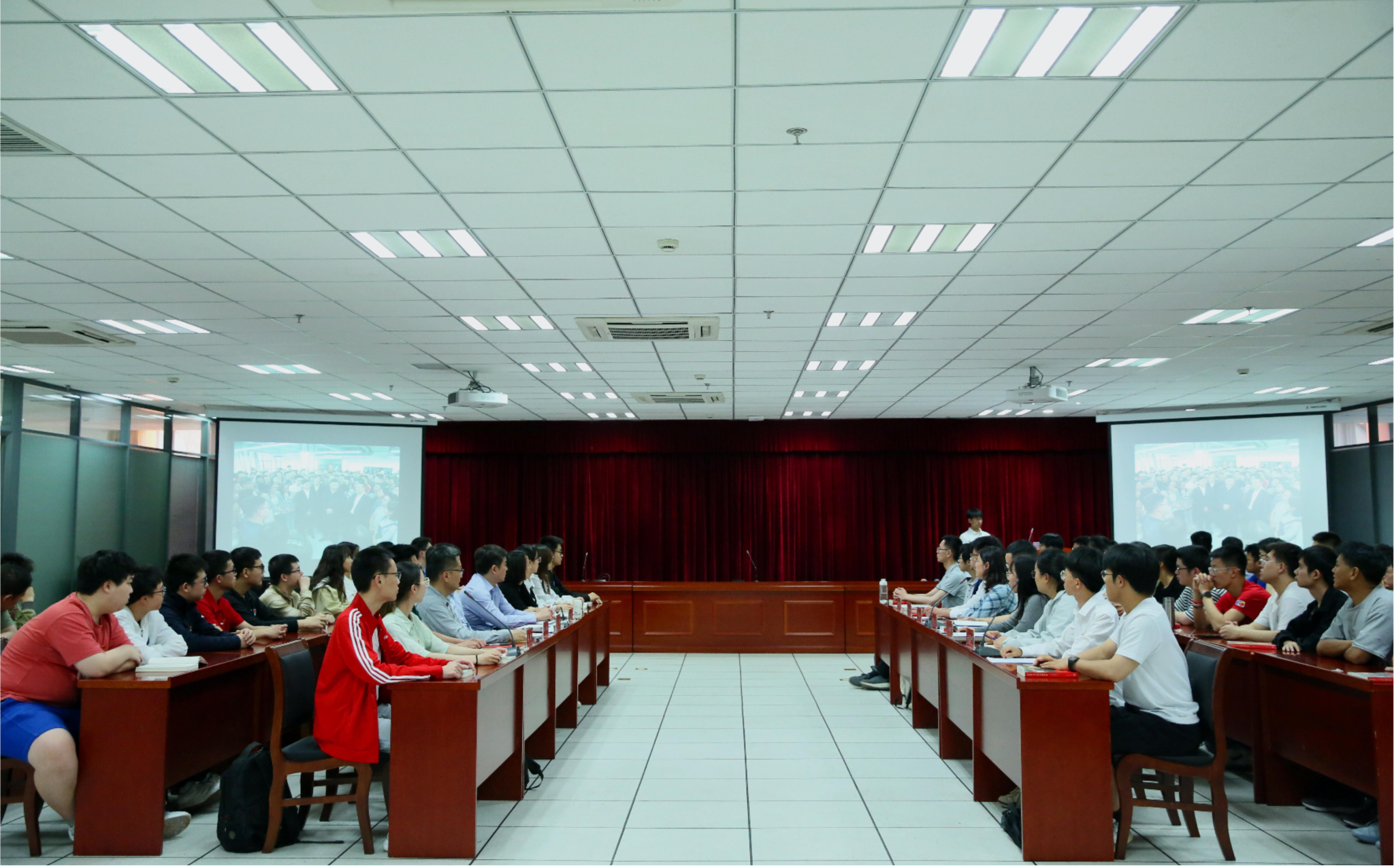与会人员通过观看新闻视频,重温了习近平总书记2016年考察中国科大视频。青年教师代表、少年班学院团委副书记潘磊回顾了当年现场场景,讲述了习近平总书记对科技创新、人才发展的重视,对中国科大、对科研人员和对青年学生的亲切关怀。化学与材料科学学院2022级本科班团支部副书记、班长许业轩同学领学了习近平总书记关于中国科大系列重要指示精神。