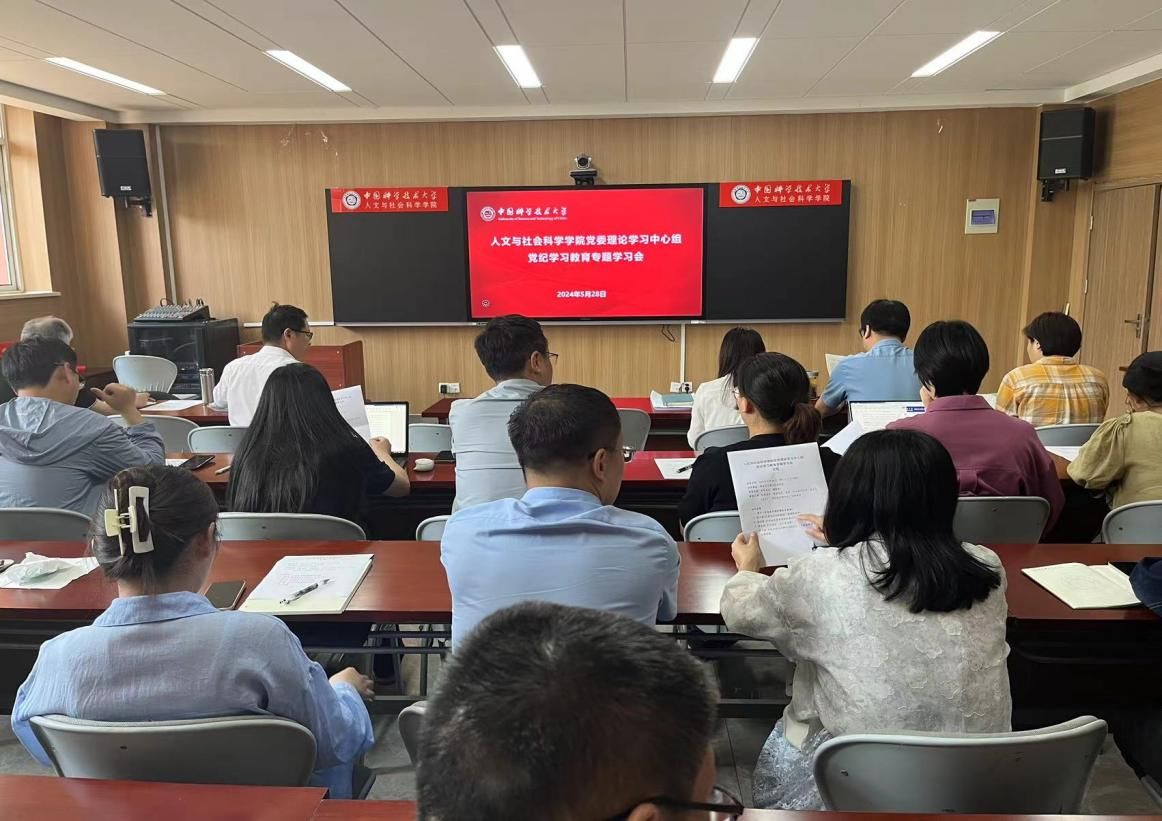 5月28日上午,人文与社会科学学院在南区118会议室召开党委理论学习中心组党纪学习教育专题学习会。校长特别助理朱灿平,学院领导,党委委员,各系、中心执行主任、副主任(党员),师生党支部书记、纪检委员参加会议,党委书记褚建勋主持学习会。