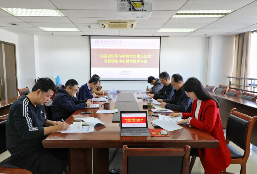 11月27日下午,公共事务学院召开“推进党纪学习教育常态化长效化”党委理论学习中心组专题学习会。学院党政领导班子成员、党委委员参加会议。会议由党委书记丁望斌主持。