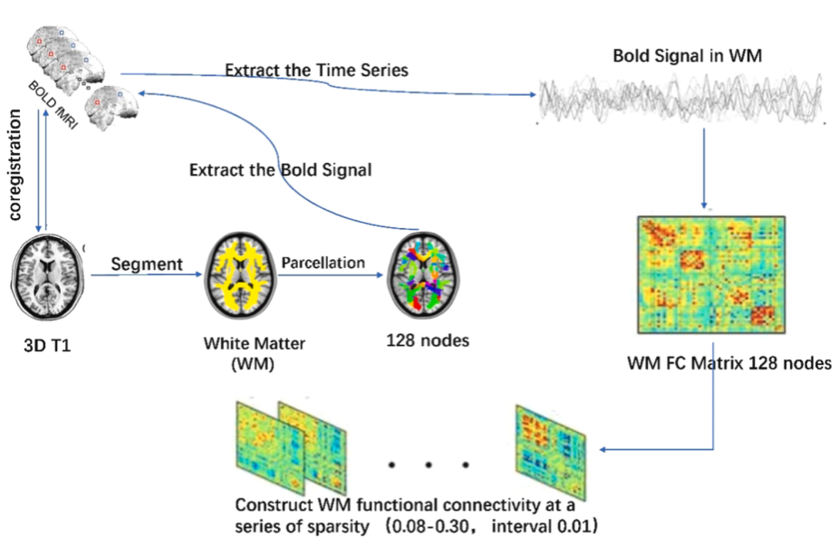 功能磁共振是研究人大脑活动的最常用的得力方法之一,它具备良好的时空分辨率,安全性高及承载丰富的神经心理信息,为揭示人类神经心理活动,探索神经精神疾病地发病机制与临床干预发挥了极其重要的作用。传统的功能磁共振分析主要聚焦于灰质信号,白质和脑脊液信号通常作为噪音信号回归。